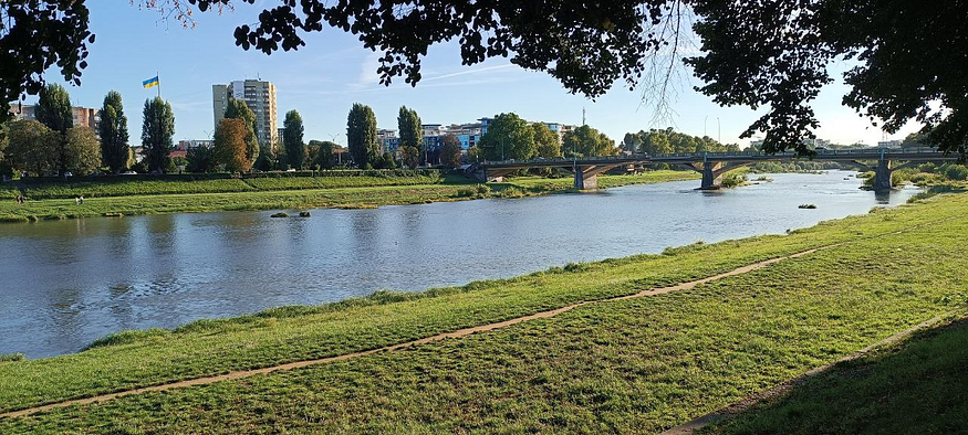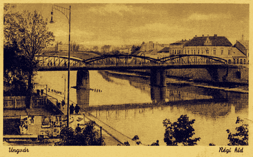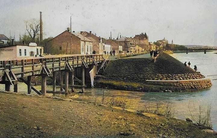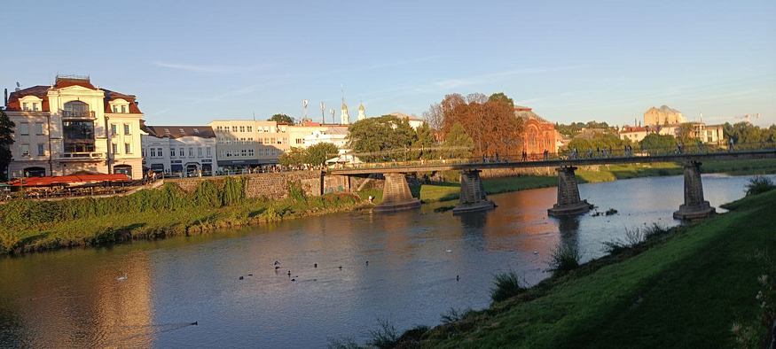I should talk about the bridges. There are three main bridges inside Uzhhorod: a foot bridge, which was wooden until the great city flood of 1893, which destroyed it. Yet it was relatively quickly rebuilt as an iron bridge in 1896–1897.