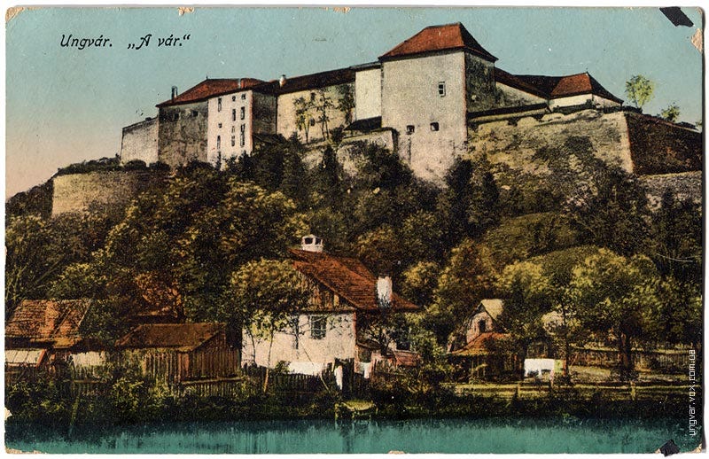 What is also very notable from this period is that there were two rivers in Uzhhorod, the main Uzh and “maly” Uzh (small Uzh), which created a sort of island in the centre and surrounded part of the castle. You can see here on this old photo: